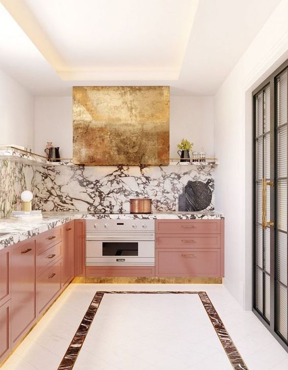 Se vuoi giocare sul contrasto materico e anche cromatico rispetto al top o alla cucina, questo materiale permette di creare combinazioni molto interessanti. Questa soluzione, come quella del legno, permette di usare stessa texture/colore/materiale usato per il pavimento: un dettaglio che renderà la tua cucina parte integrante dello stile dell’intera casa.