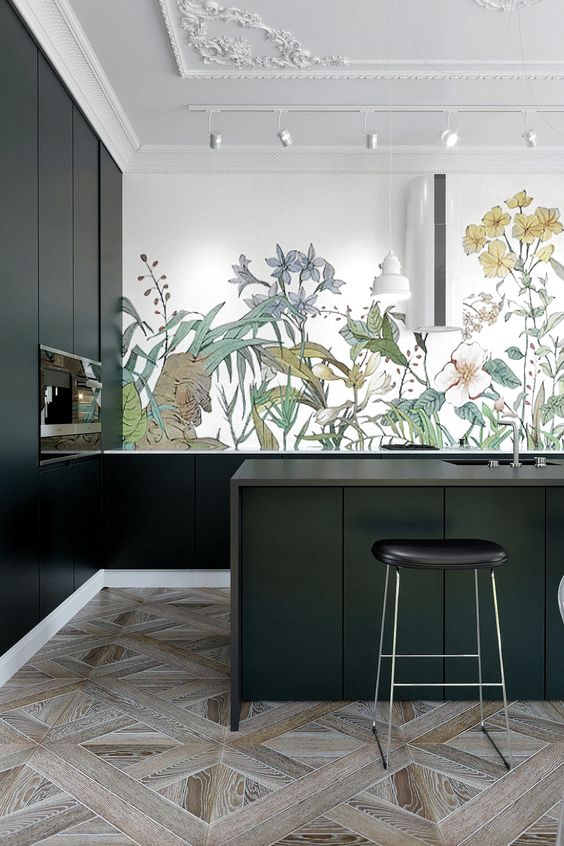 La carta da parati, ormai tornata in auge da qualche anno, si è evoluta soprattutto per quanto riguarda i materiali, tanto da poter essere usata anche in ambienti umidi, come bagno e cucina, appunto. Basterà scegliere un tessuto non tessuto, durevole e facilmente lavabile, e il disegno che più si addice ai colori della cucina e il gioco è fatto!