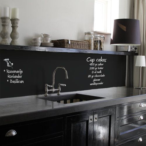 Questa soluzione, insieme alle prossime, è adatta a chi non ama o non desidera nessun tipo di rivestimento; La vernice lavagna ha una composizione in grado di coprire perfettamente gli intonaci e i vecchi rivestimenti e può essere stesa praticamente su ogni tipo di superficie. E’ resistente, lavabile e scrivibile, naturalmente. Inoltre è sicuramente tra le più economiche e il risultato è molto divertente.
