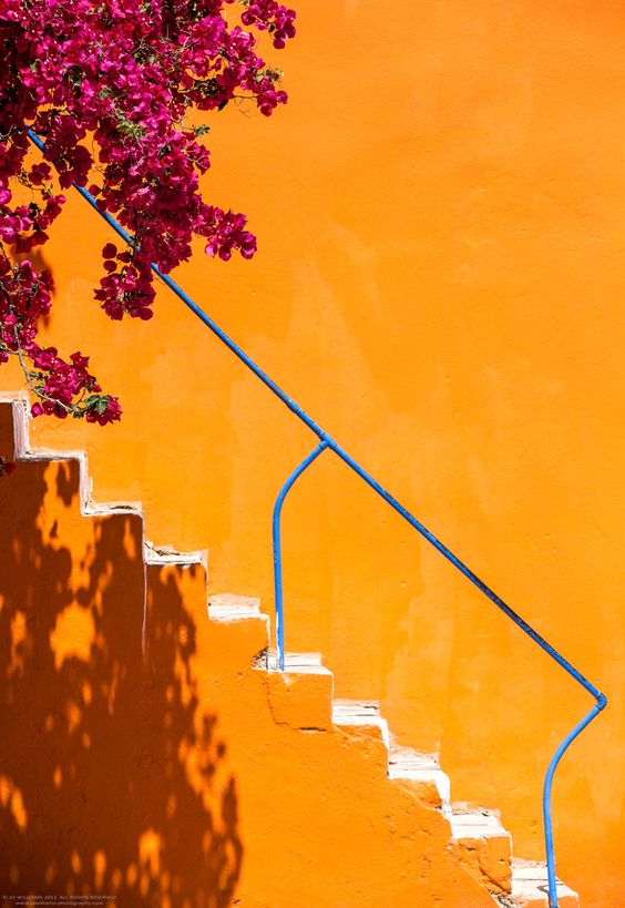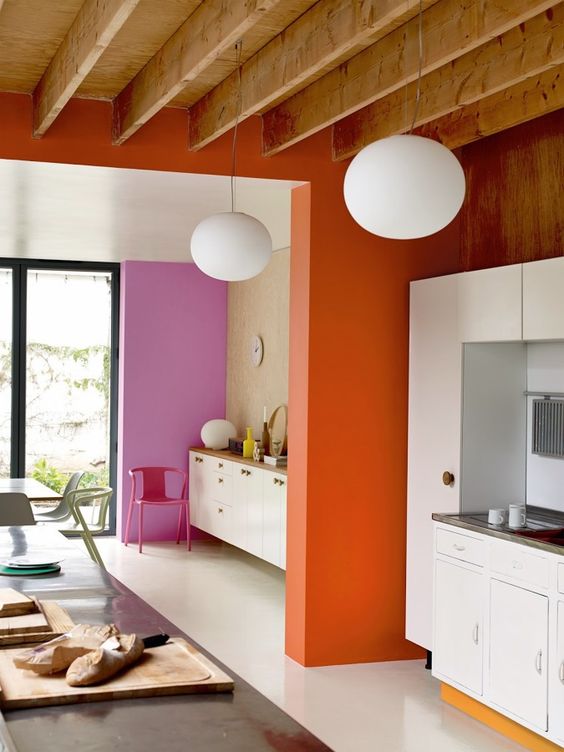L’arancione è un colore eccentrico, quindi capisco il timore di usarlo per tinteggiare; vale però sempre la regola n.1 (vedi sopra): quindi, se non esageri, puoi dar vivacità al soggiorno, allo studio ( qui risveglia l’attenzione), all’ingresso o alla cucina (qui stimola l’appetito e favorisce la digestione) scegliendo di dipingere una sola parete.