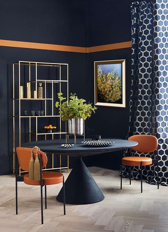 Regola numero 2 – SOLO PER VERI TEMERARI- :Abbinalo ad altri COLORI FORTI e scuri (ma sempre applicando la regola numero 1) oppure scegli CARTE DA PARATI che contengano anche l’arancione;