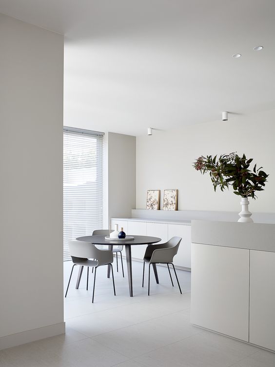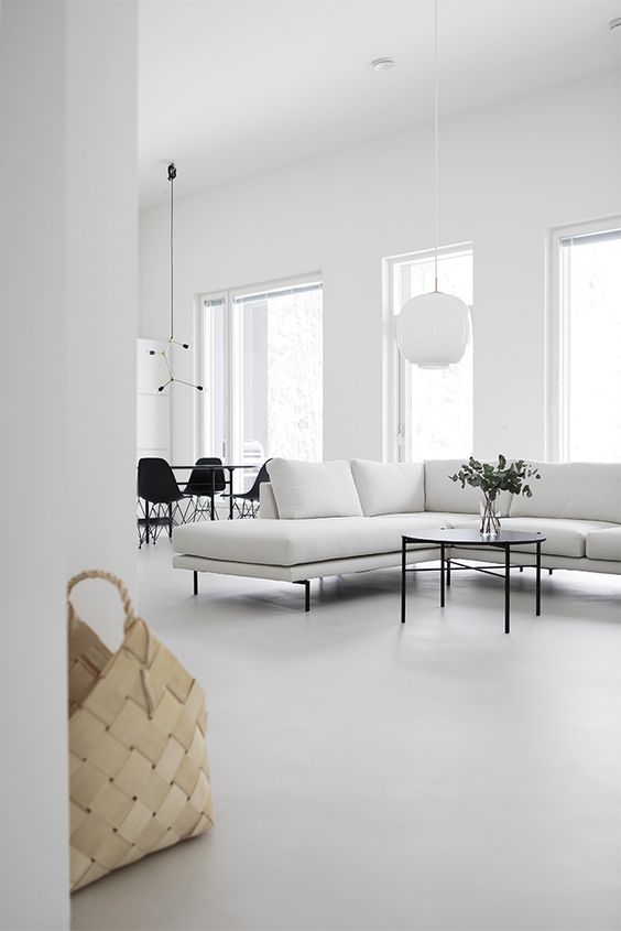 Nello stile minimale per eccellenza gli ambienti sono preferibilmente di colore bianco; ogni spazio è un tutt’uno di un solo colore.