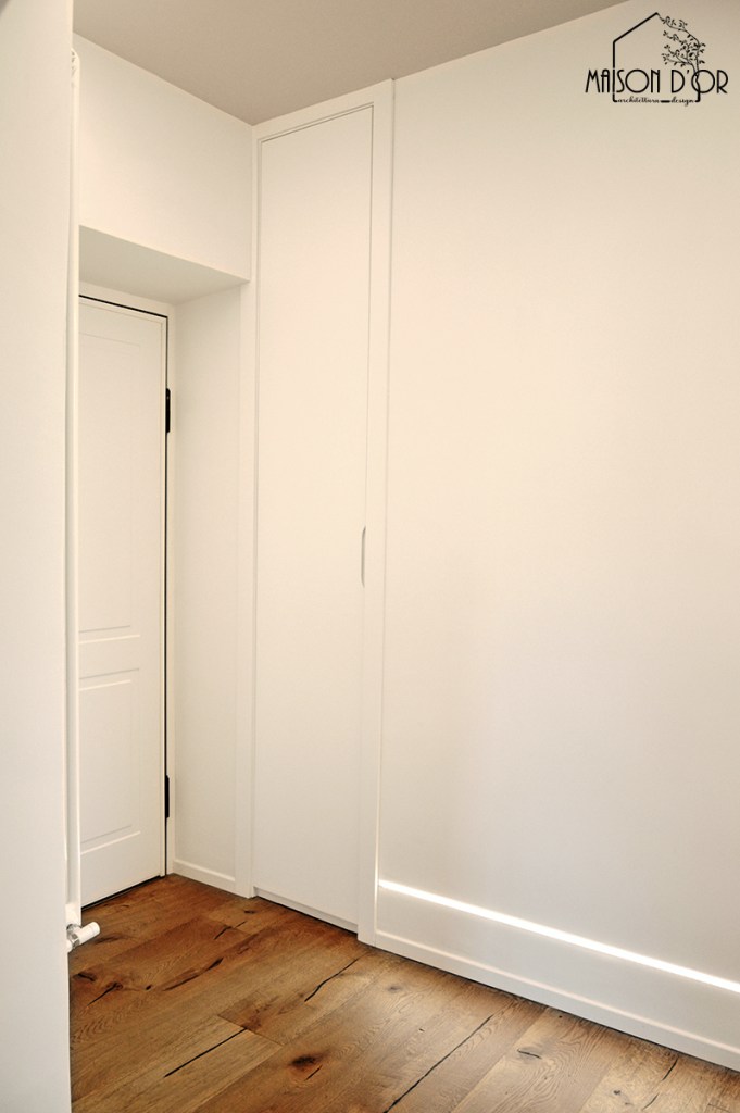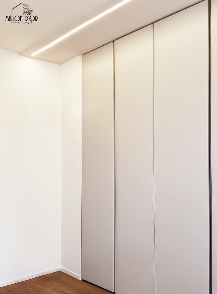 Abbiamo inoltre sfruttato una parte dello spazio dell’ingresso per creare, oltre ad un ulteriore guardaroba, un angolo lavanderia, lasciando così libero il bagno da tale funzione.