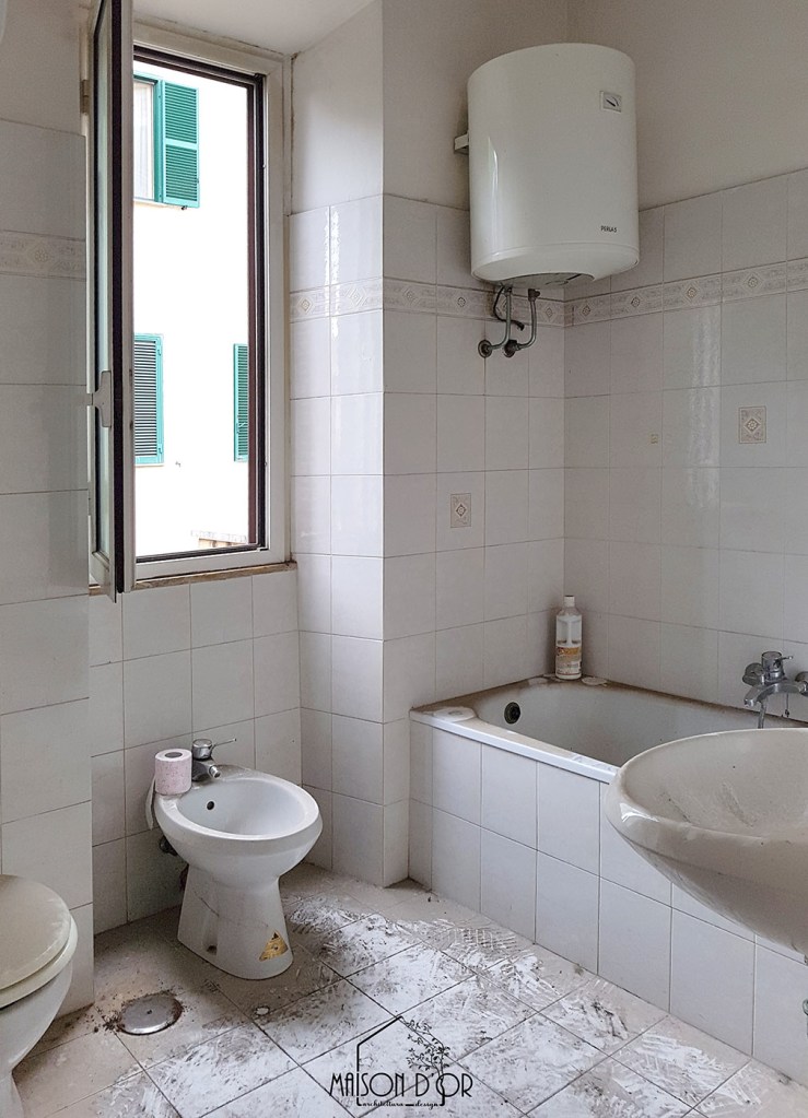 Tra i rivestimenti in ceramica, la cucina, le finestre e le vecchie pareti dominava il bianco, seppur spiccavano le porte di un improbabile colore e un grigissimo e, ormai, rovinato pavimento in graniglia; nonostante questo, aleggiava un’atmosfera rilassata e onirica, cosa che i nuovi possessori avrebbero voluto ritrovare, mantenendo la palette dei colori molto neutra.
