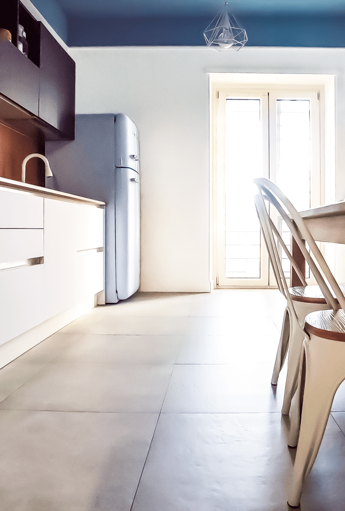 La cucina ha trovato un nuovo equilibrio non solo grazie al nuovo mobilio, ma anche tramite un gioco di volumi e tramite l’aderenza con la palette cromatica scelta, che ben si addice alle amate piastrelle!